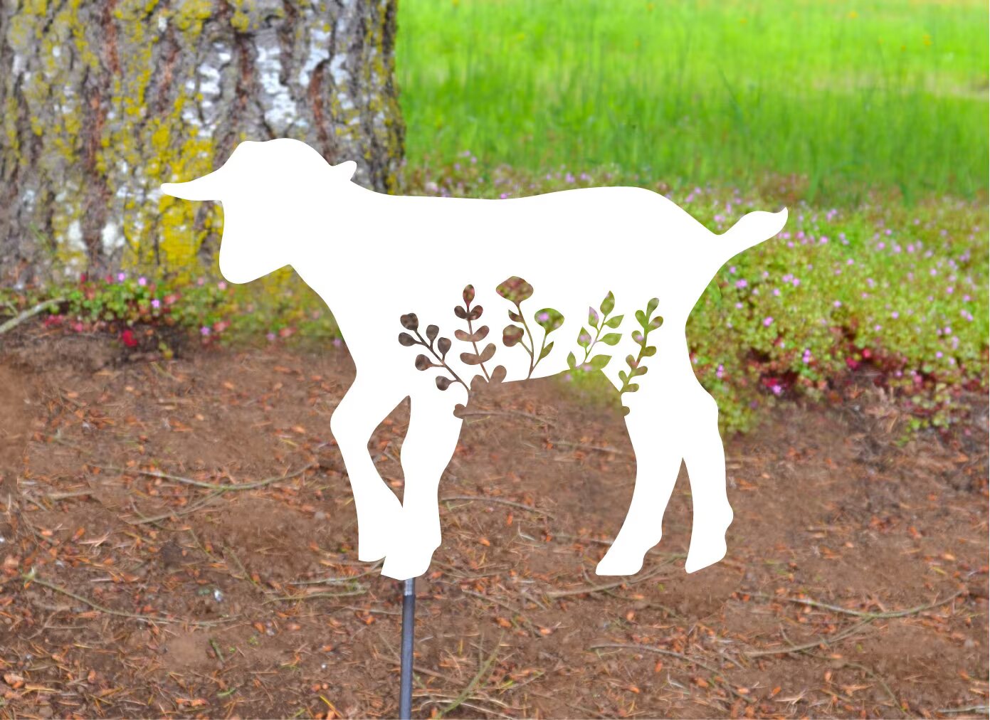 Metal Art Floral Floppy Ear Baby Lamb Stake Decoration, Yard Art, Spring Garden Decoration, Outdoor Garden Decor Farm, Farm House, Sheep, Post Mount Bracket, Wall Mount w/(Holes)