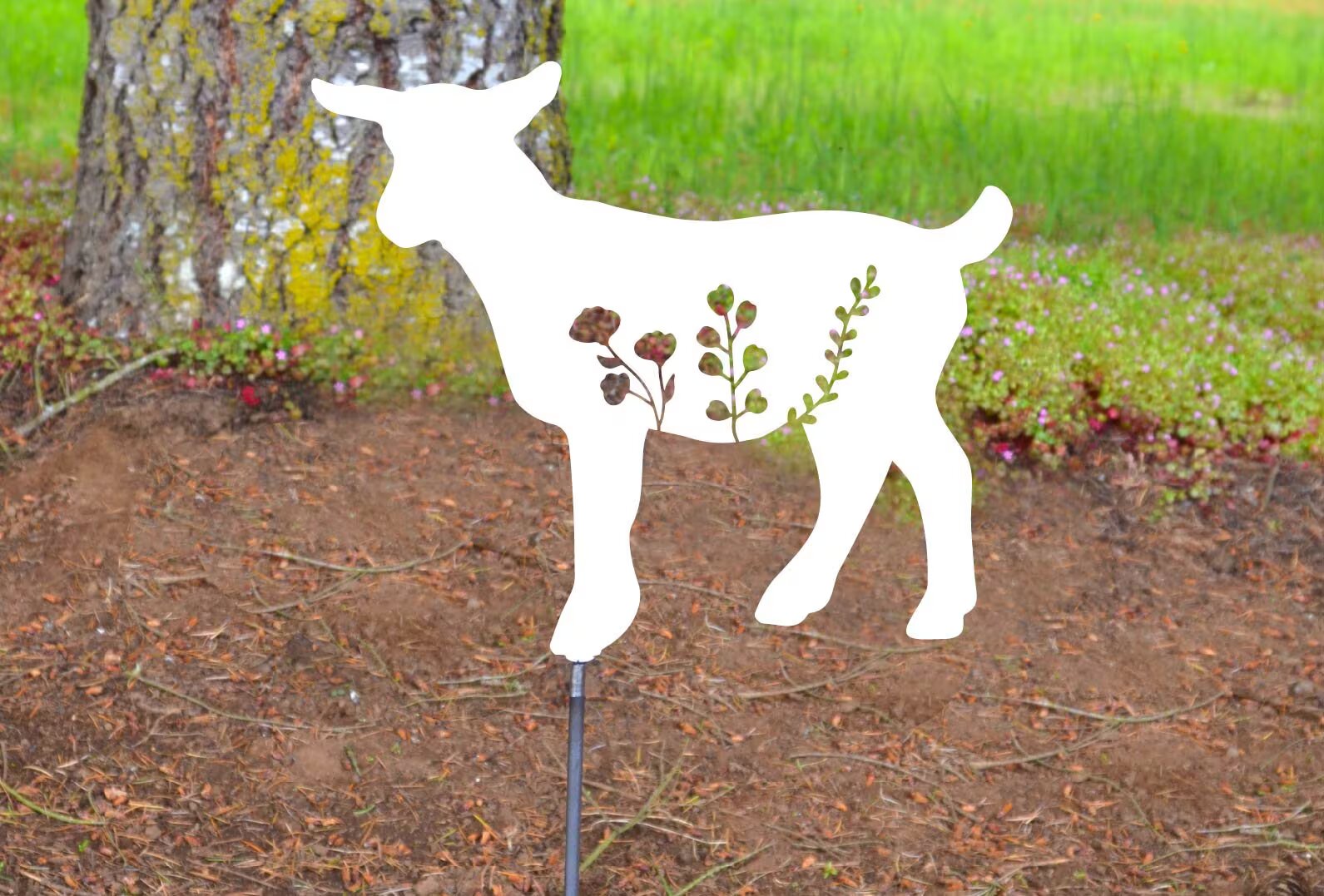 Metal Art Floral Goat with Stake Decoration, Yard Art, Spring Garden Decoration, Outdoor Garden Decor Memorial Farm, Farm House, Goat, Sheep, Post Mount Bracket, Wall Mount w/(Holes)