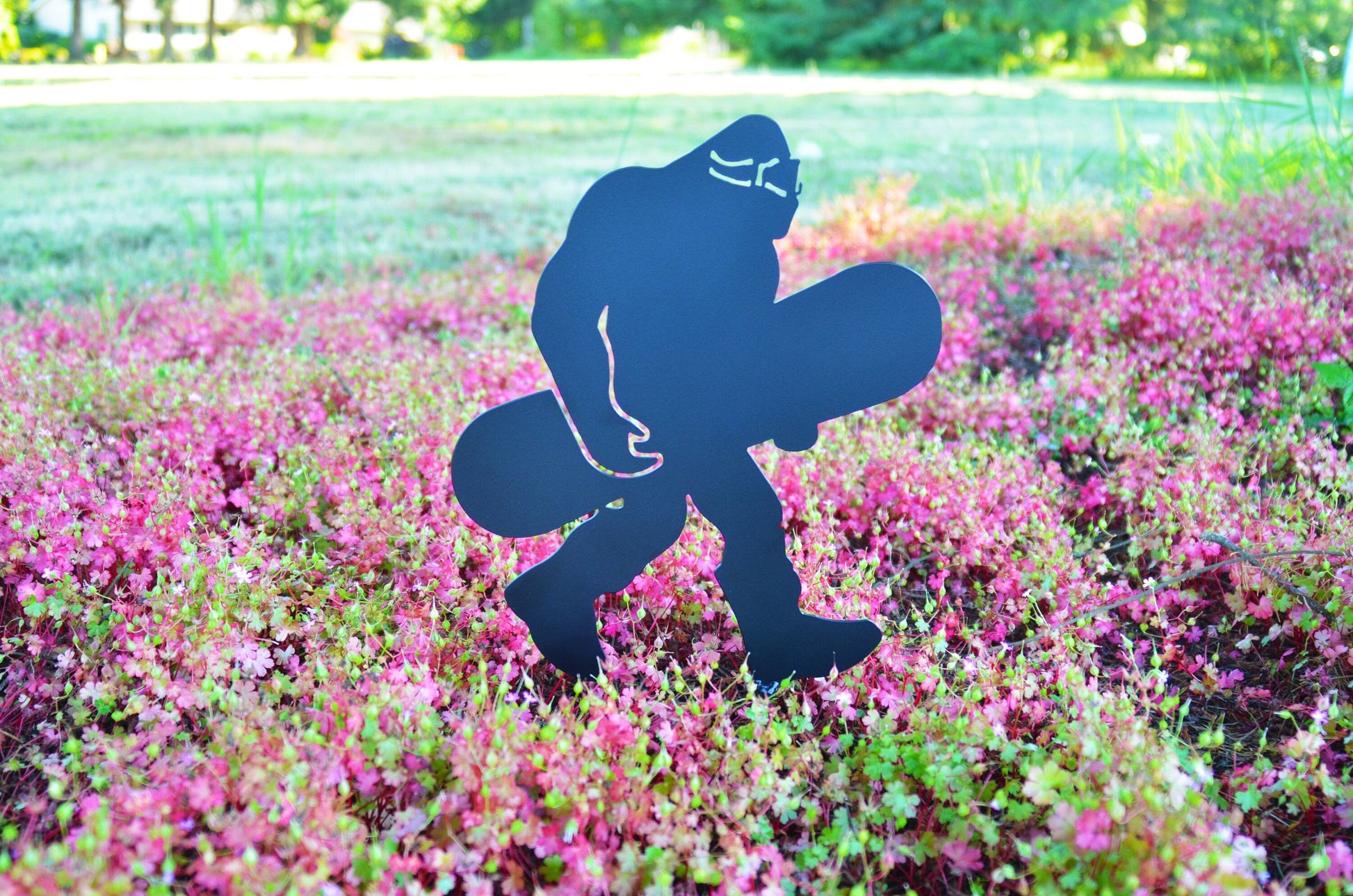 Sasquatch Garden Stakes | Bigfoot Yard Stakes | Staked Yard Art | Metal Sasquatch | Custom snow boarding | Bigfoot Yard Art, Post Mount Bracket, Wall Mount w/(Holes)