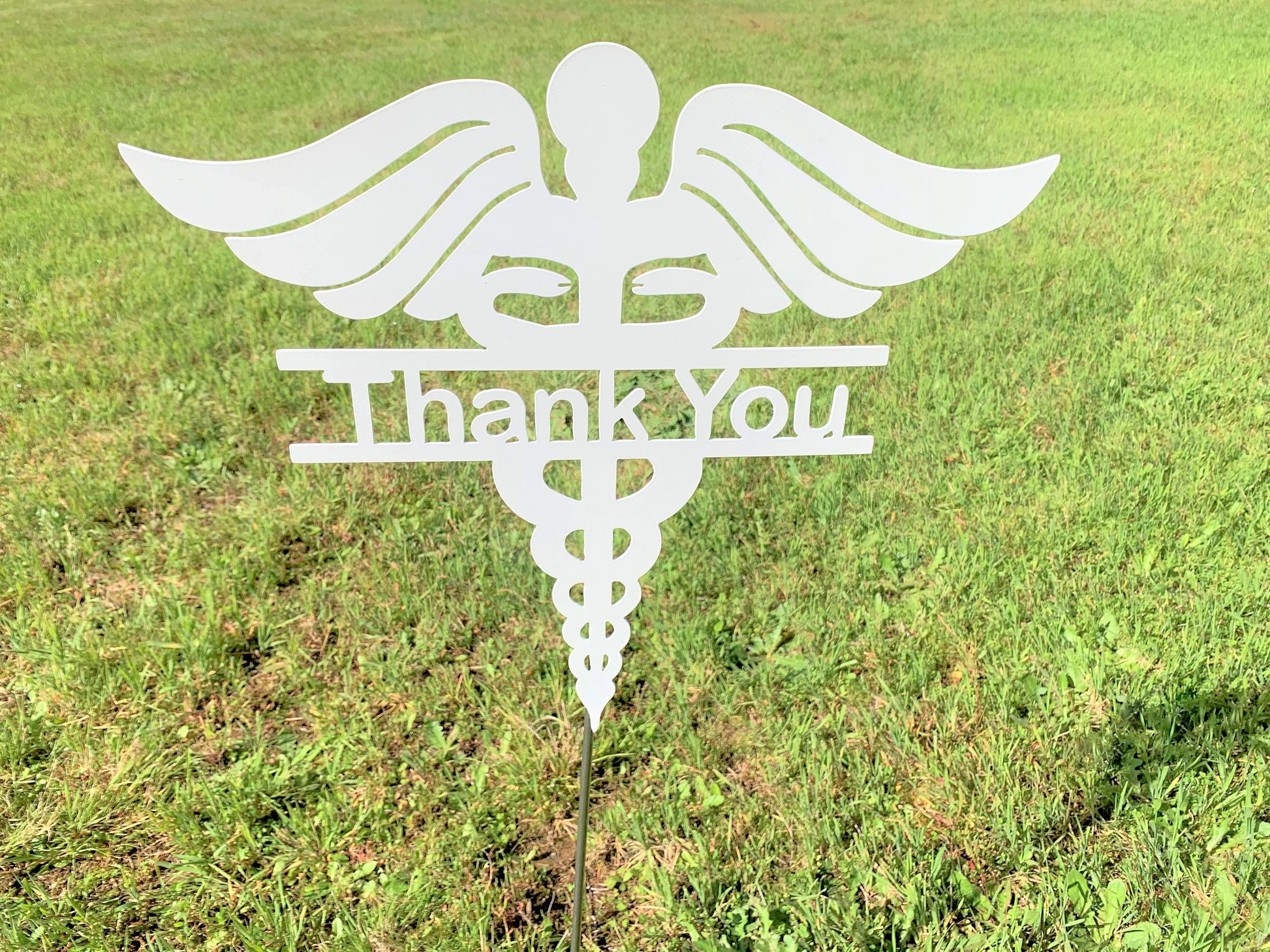 Thank You Medical sign, Show your support to all First Responders, Doctors, Nurses, Police, Firefighters, EMT's and everyone in between. Post Mount Bracet, Wall Mount w/(Holes)