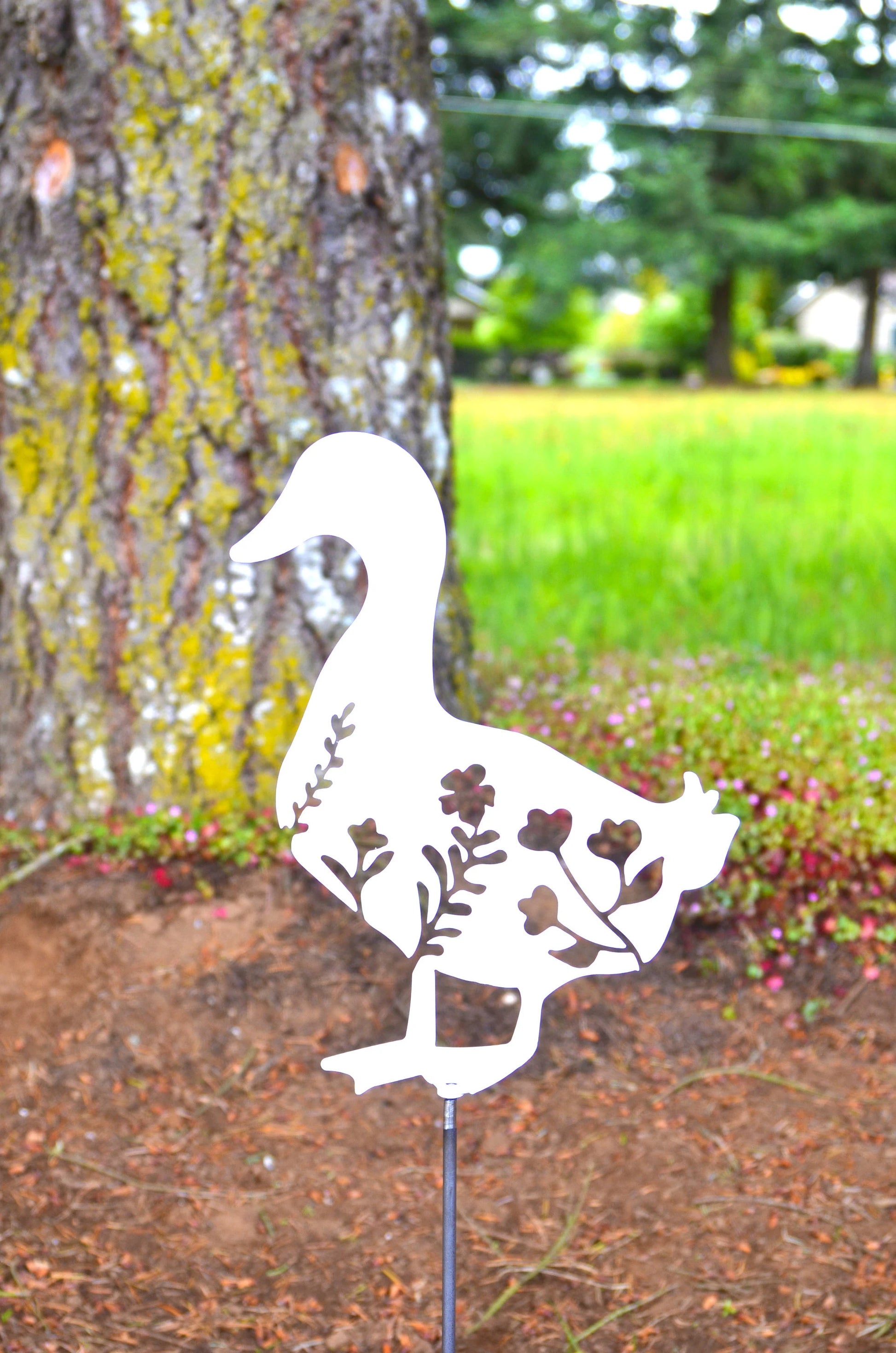 Metal Art Floral Garden Duck Stake Decoration ,Spring Easter Gift Yard Art, Hand Made, Spring Garden Decoration, Outdoor Garden Decor Stake Attached(12" Stake Detachable)