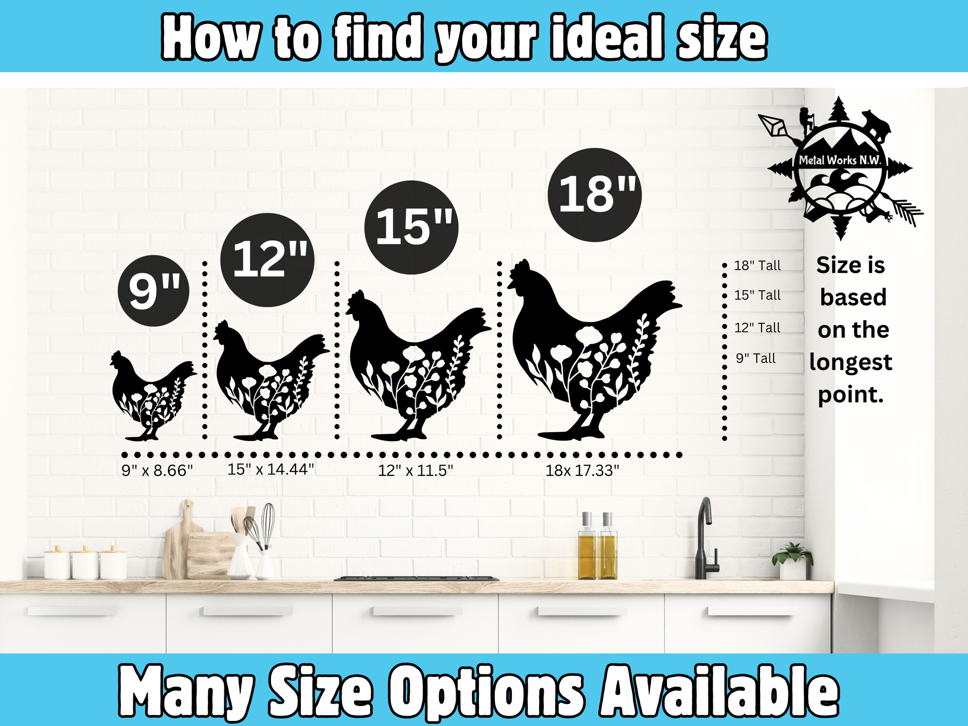 ※ Available in 6 Sizes Options: 9", 12", 15", 18", 21", 24" ( Note that dimensions are based on the longest side of the design. Whether it’s the height or the width, with the other dimension scaled proportionally)